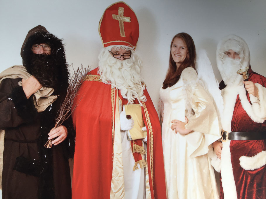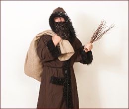 Ruprecht eher der negative, strafende Part. Er trägt eine braune Kutte. Sein Markenzeichen ist die Rute, die er am Gürtel bei sich trägt.